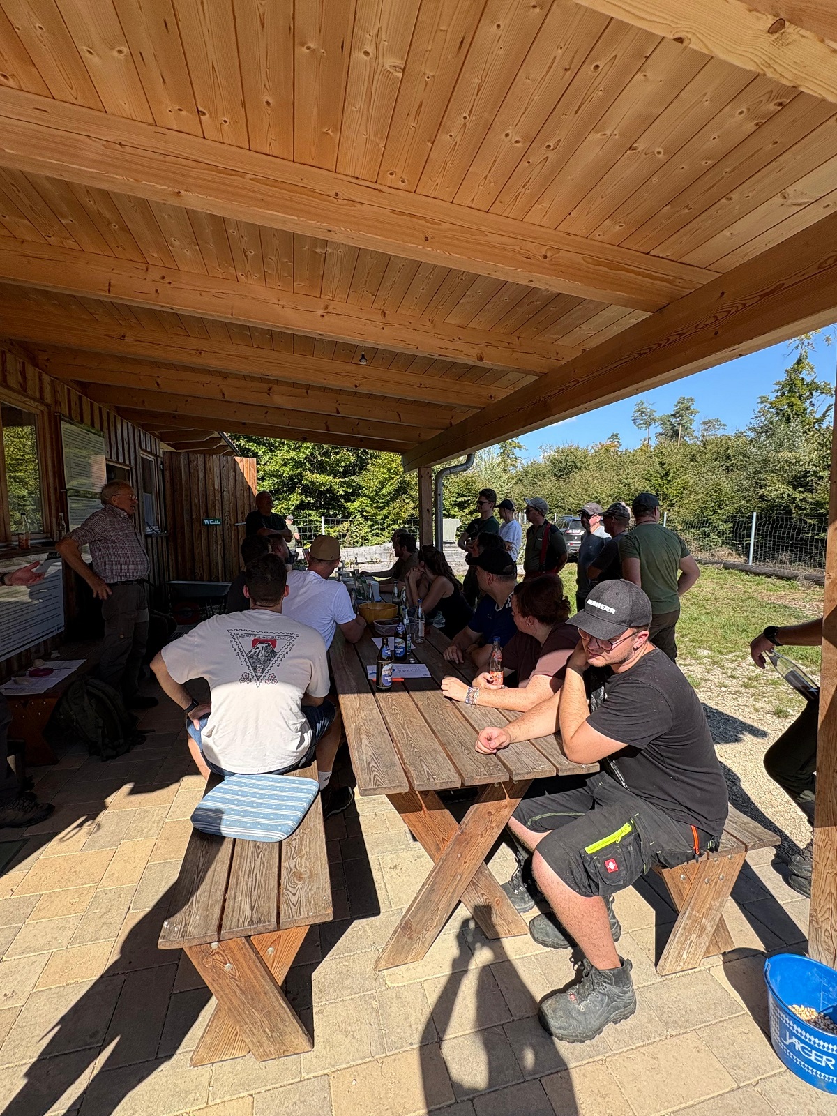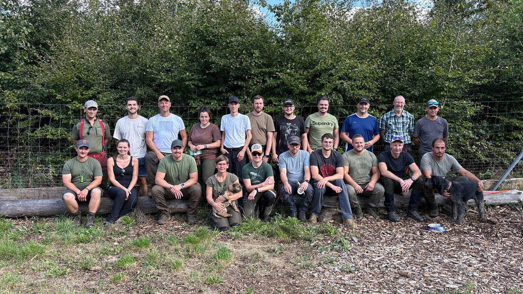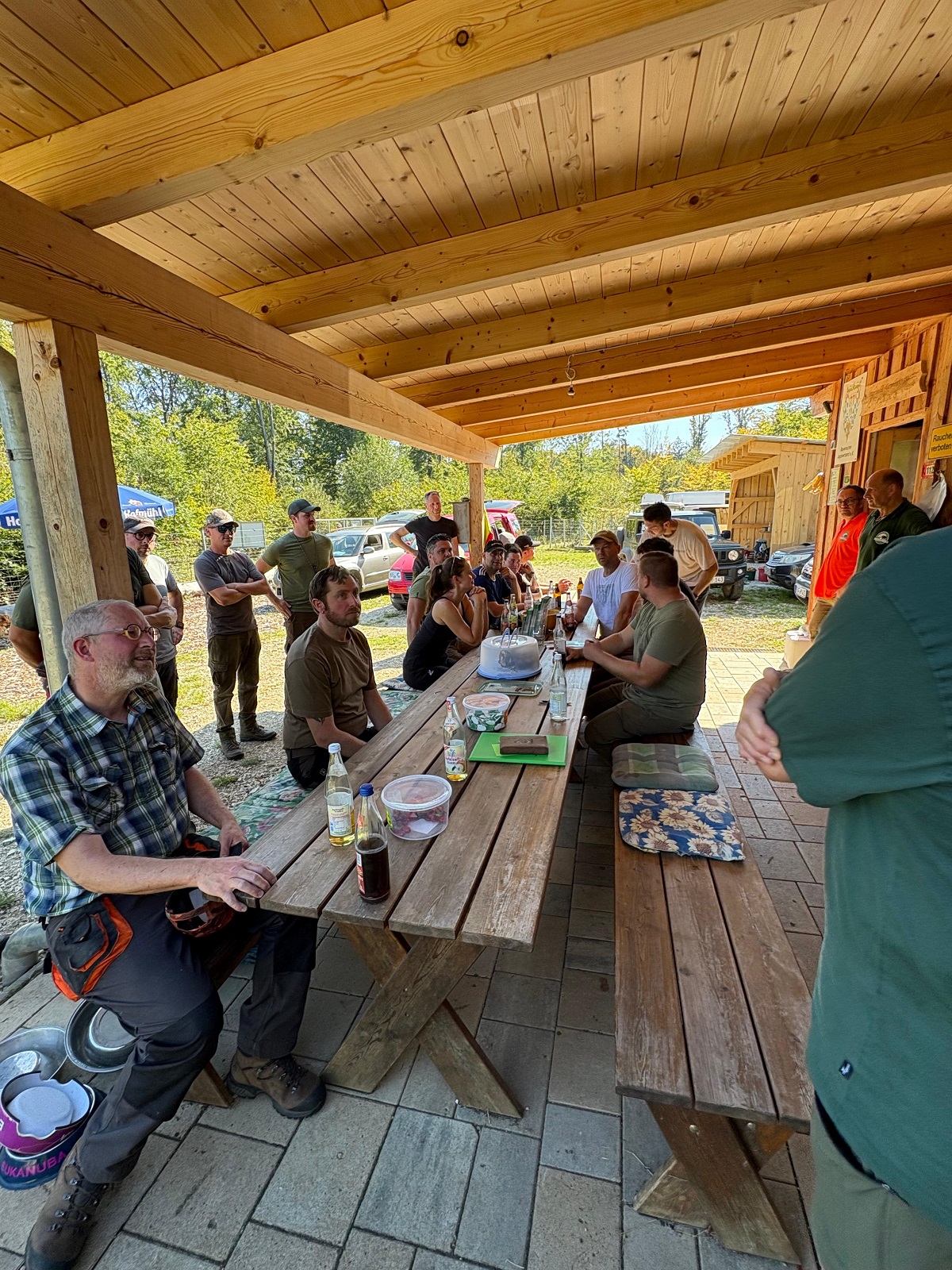 Es gehört zur langjährigen Tradition des Vereins und des Jagdkurses, die Teilnehmer:innen mit auf Exkurs ins Schwarzwildgatter Altmühltal zu nehmen. Die Teilnehmer - als Team - konnten dort alles genau erkunden, beim Freischneiden von Gatterzäunen und bei weiteren wichtigen Tätigkeiten helfen. Im Mittelpunkt des Besuchs stand natürlich das Kennenlernen und Verstehen der Anlage als Schwarzwildgewöhnungsgatter für Jagdhunde. Mithilfe von drei Vierbeinern wurde demonstriert, wie die Ausbildung und Einarbeitung der Hunde abläuft. Die begeistern Teilnehmer gönnten sich abschließend noch ein gemütliches Beisammensein vor Ort.