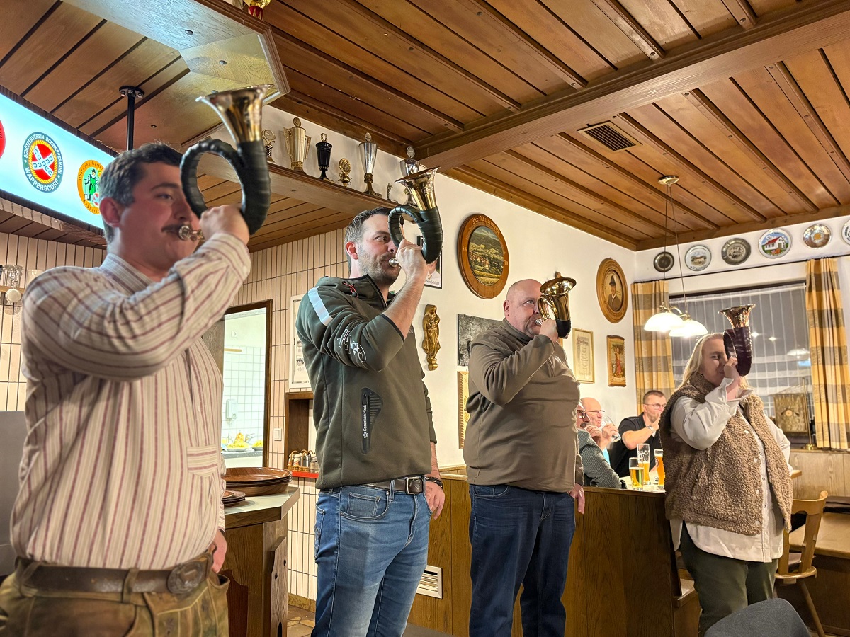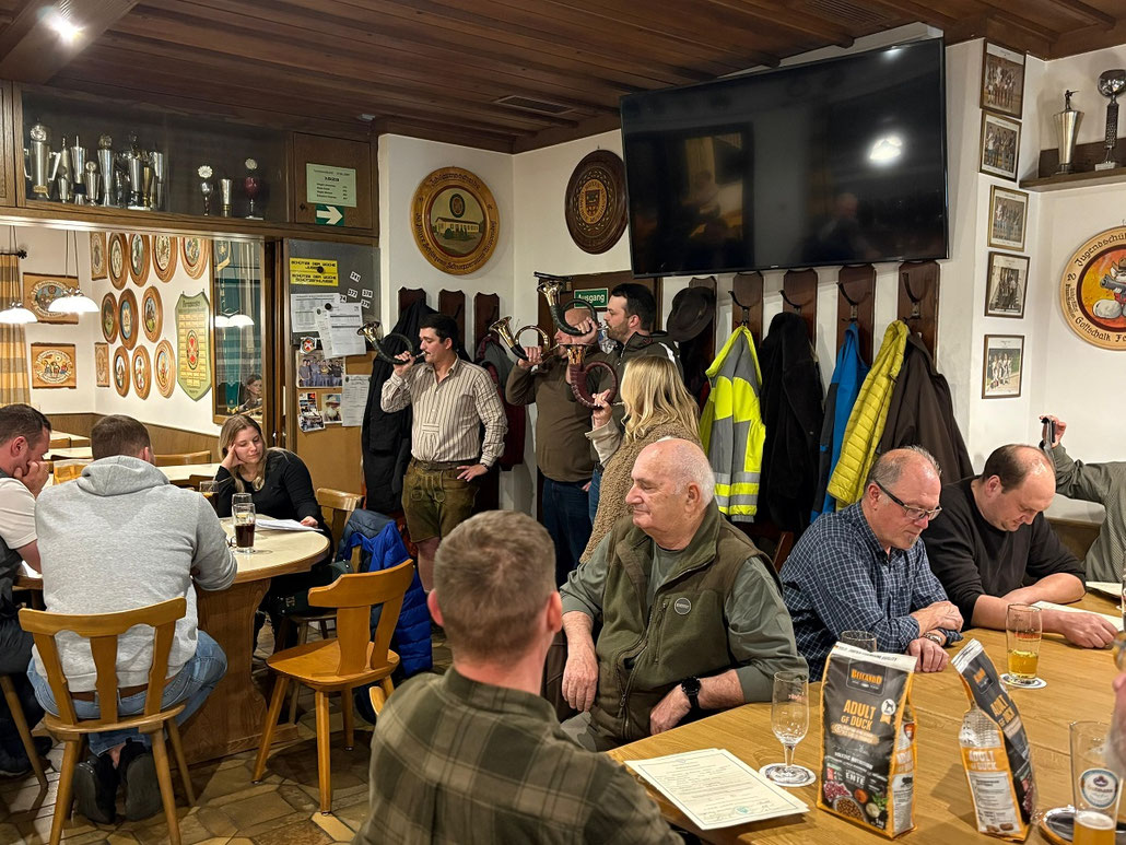 Am 9. November 24, ab 17 Uhr, fand unsere diesjährige Hubertusfeier statt. Beginnend mit dem Gottesdienst in der St. Johannes Kirche in Neumarkt und als festliche Abendveranstaltung fortgesetzt im Berngauer Hof, mit zahlreichen Gästen, Vereinsmitgliedern und unserem bayerischen Finanz- und Heimat Minister Albert Füracker (CSU) als Hubertusredner. Die Verleihung der 14 Jägerbriefe, die nach dem traditionellen Jägerschlag - vorgenommen vom (ehemaligen) Ausbildungsleiter Stefan Moosburger - erfolgte, war natürlich das Highlight des Abends. Das Team des Berngauer Hofs sorgt durch das weihnachtlich dekorierte Ambiente, die gutbürgerliche Küche und freundliches, wie zügiges Bedienen dafür, dass alle Gäste sich wohlfühlten. Die Musik machten unsere Jagdhornbläser, ganz wunderbar - dies gehört ebenfalls zu unserer langjährigen Tradition an den Hubertusfeiern.