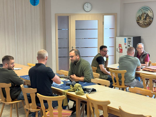 Am Samstag (27.7.), im schattigen Biergarten des Vereinsheims (SG1433), fand in familiärer Atmosphäre die erste Waffenhandhabung für die Teilnehmer des JK 2024/25 statt. Der zuständige Ausbilder