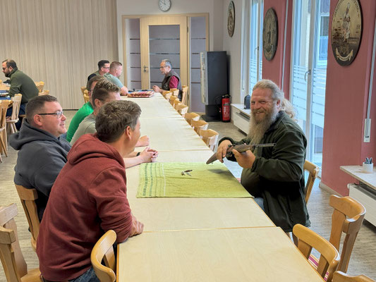 Andreas Greger führte mit seinem Team die Sicherheitsbelehrung durch und stellte den Kursteilnehmern alle Prüfungswaffen vor, die diese über den gesamten Kurs hinweg begleiten werden.