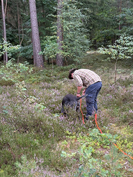 Die Gattermeister erklärten Sinn und Zweck des Schwarzwildgatters und erläuterten, wie die Ausbildung der Hunde funktioniert und zwar an sechs verschiedenen Hunden in fünf verschiedenen Rassen natürlich auch in den verschiedenen Ausbildungsstufen. Die Schüler/innen unseres Jagdkurses durften also live erleben, wie die Ausbildung am Schwarzwild in der Praxis abläuft.