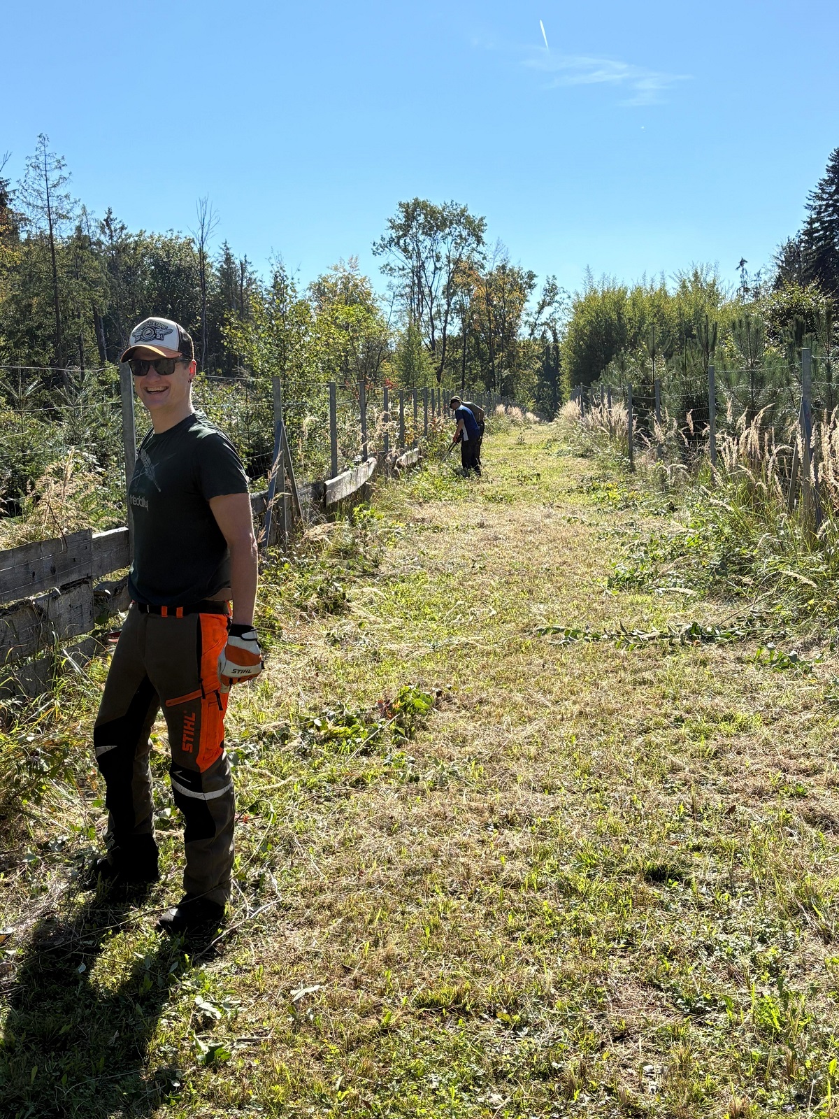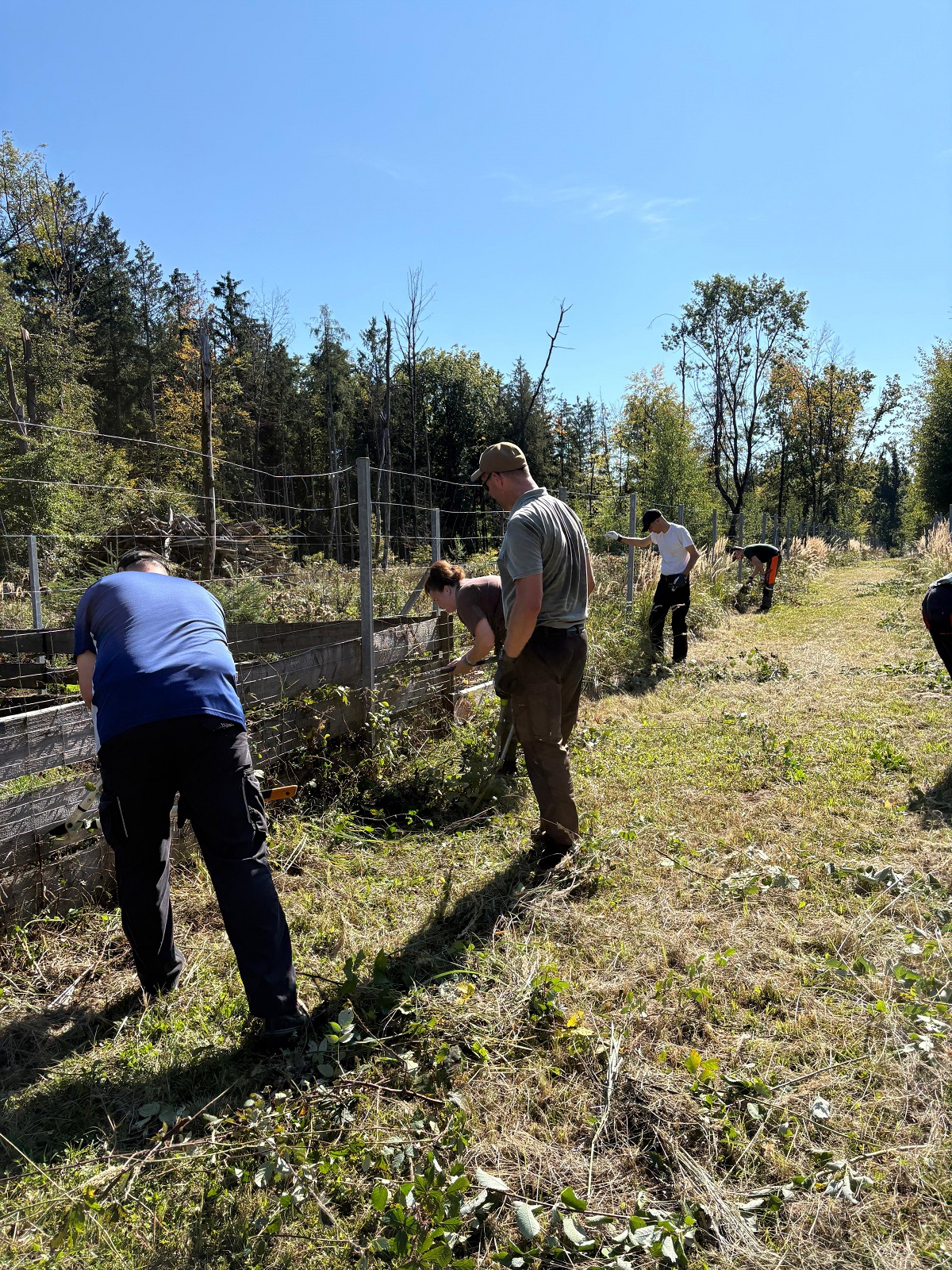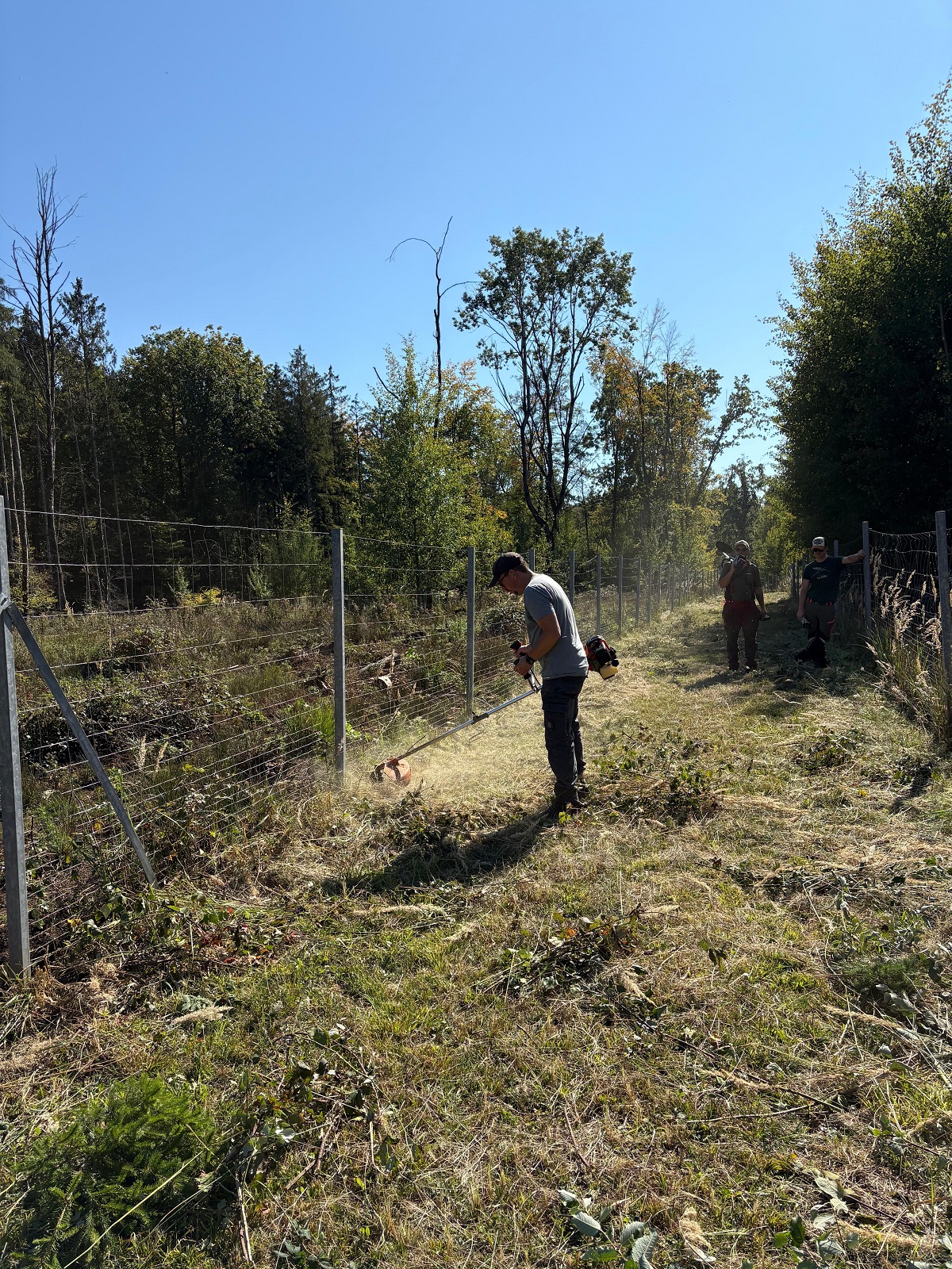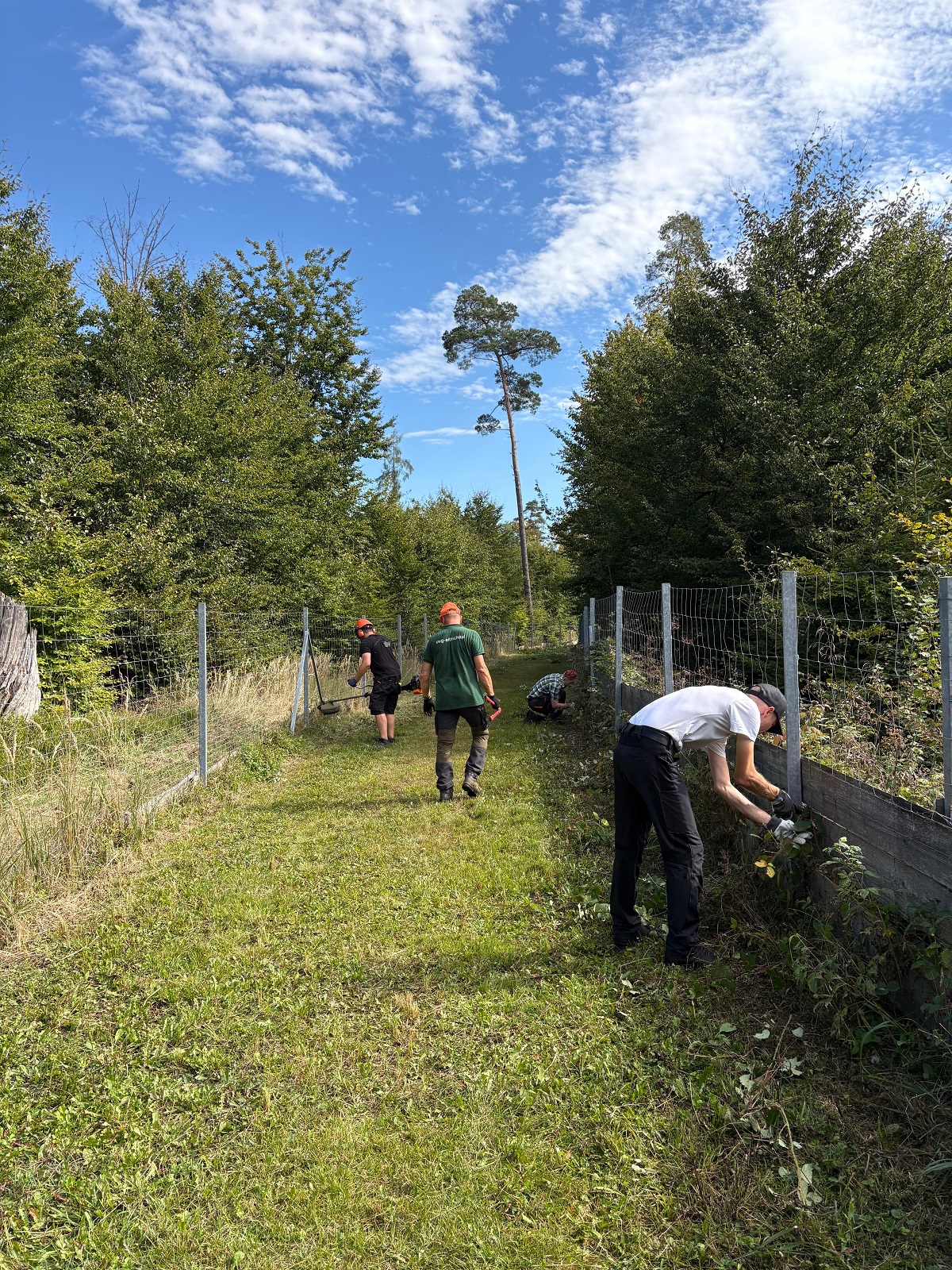 Mit knapp 20 Personen haben wird gemeinschaftlich erst einen Arbeitsdienst geleistet, bei dem wir die komplette Zaunanlage freischnitten. Anschließend gab es lecker Braten zur Stärkung und Belohnung.